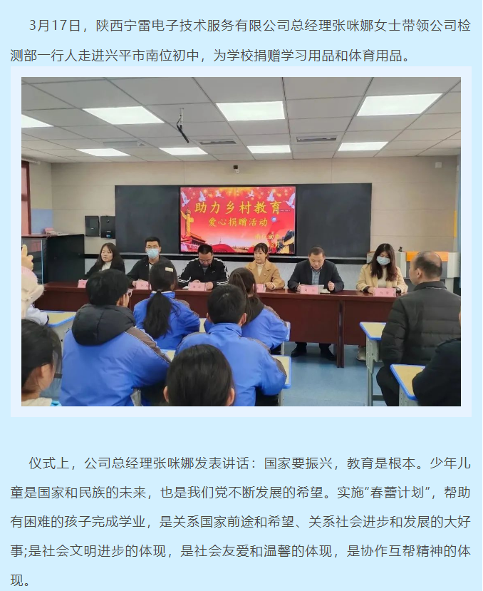 陜西寧雷檢測舉辦“關愛學生成長,助力鄉(xiāng)村教育”公益活動