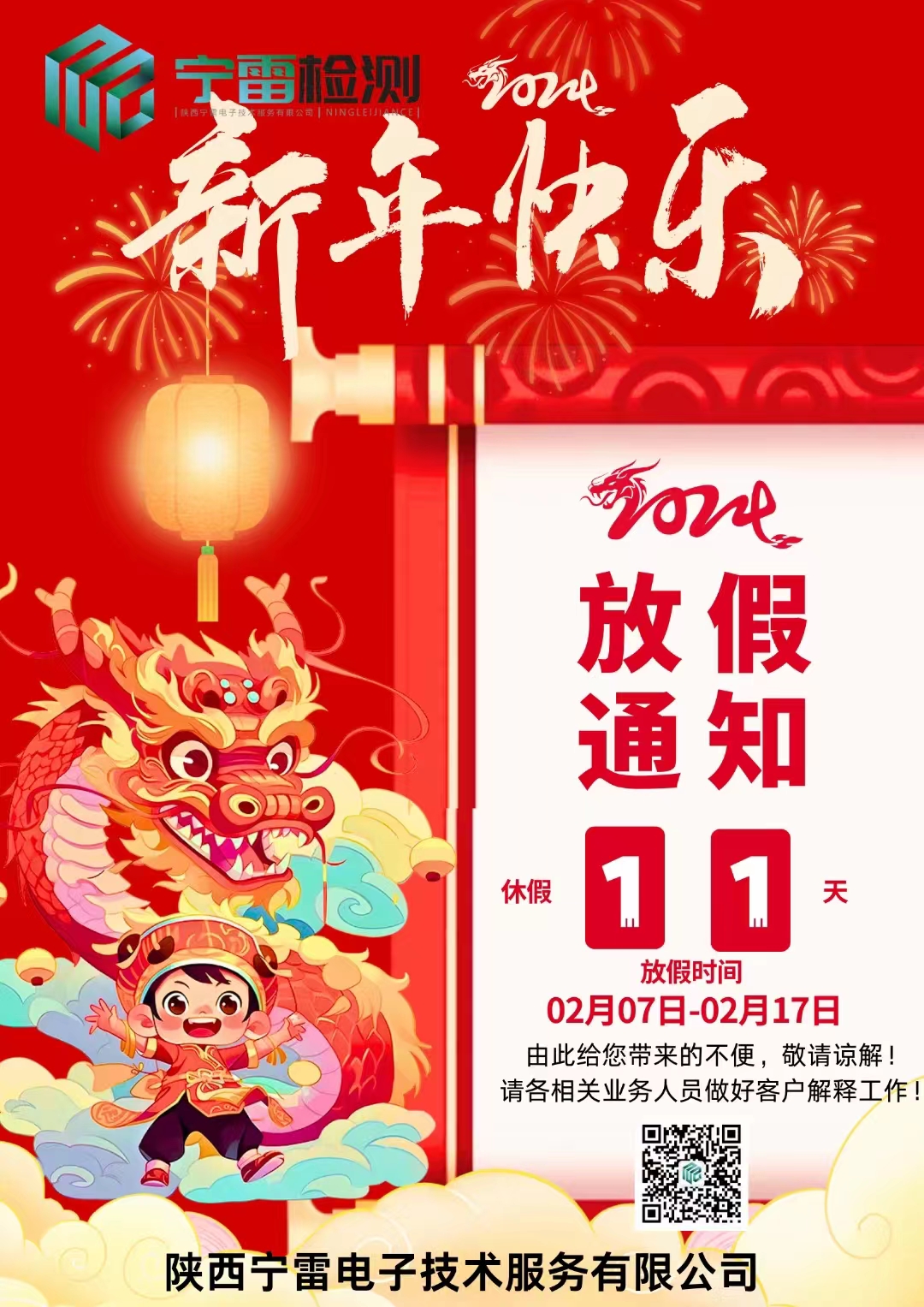 寧雷檢測2024春節(jié)放假通知
